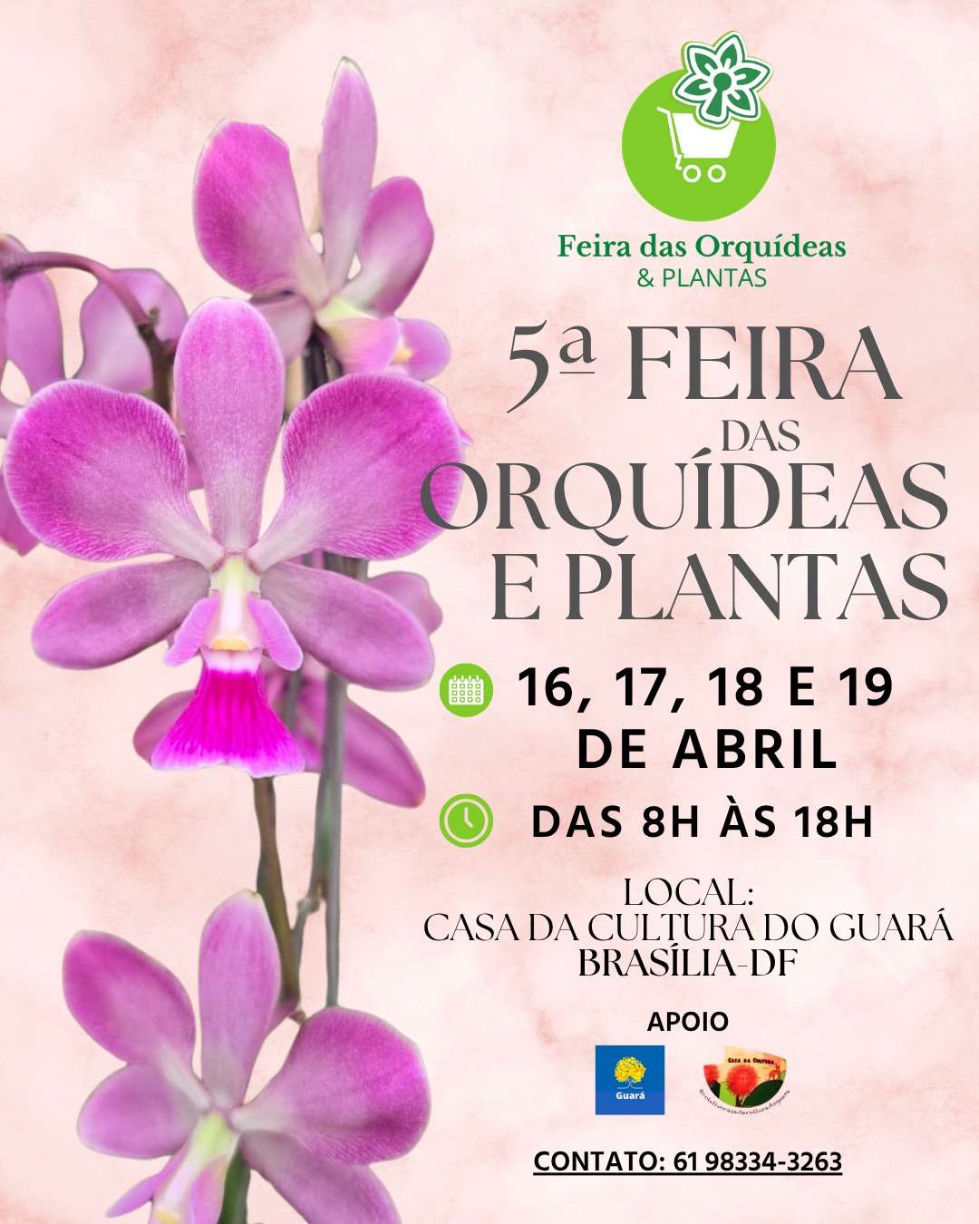 A paixão por orquídeas e plantas e ganham destaque em Brasília com a realização da 5ª Feira das Orquídeas & Plantas, que acontece entre os dias 16 e 19 de abril, das 8h às 18h, na Casa da Cultura do Guará, com entrada franca.