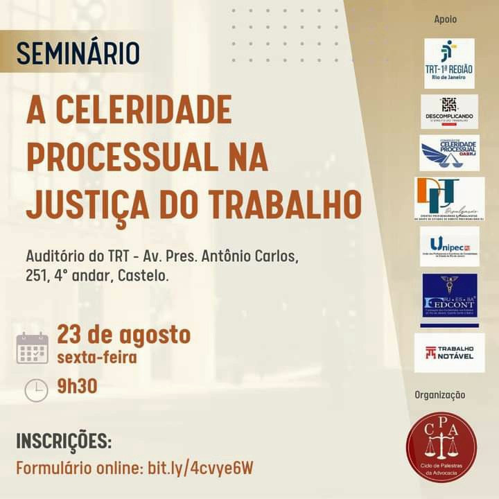Também vão participar do evento presencial, o vice-presidente do TRT/ RJ, desembargador Roque Dattoli, a vice-corregedora, desembargadora Maria Aparecida Coutinho Magalhães, e o advogado Ricardo Menezes, diretor de Apoio às subseções, entre outros.