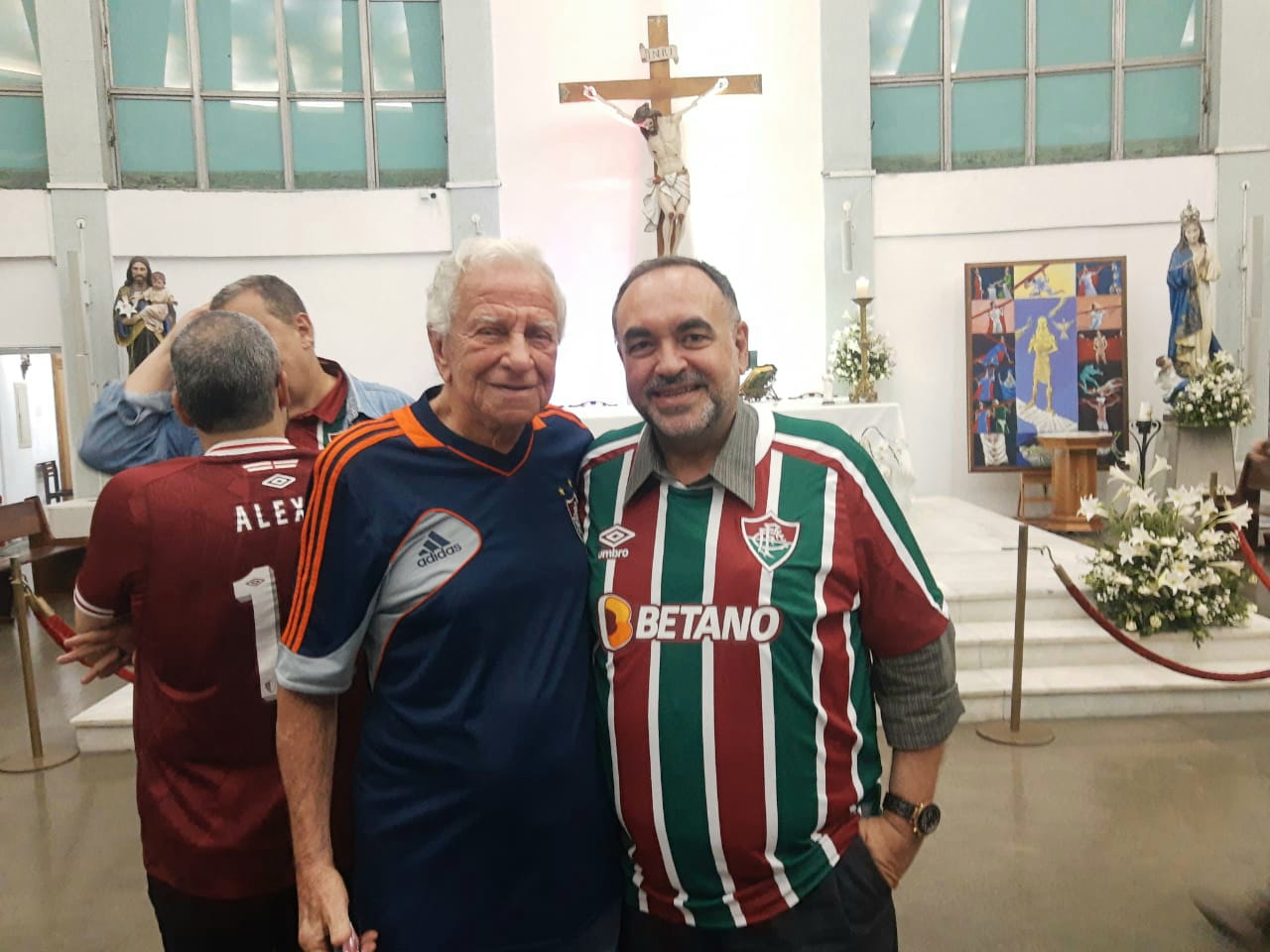 Presidente da Confraria dos Amigos da Barra da Tijuca e integrante do Conselho do Fluminense, o ex-deputado Mauro Magalhães e o representante da Associação dos Dirigentes Cristãos de Empresas, Elmair Neto, participaram da missa “Tricolor com Padre Omar”, que também teve a presença torcedor e padre Jorjão e do decano, Francisco Horta, considerado o melhor presidente que o time já teve.