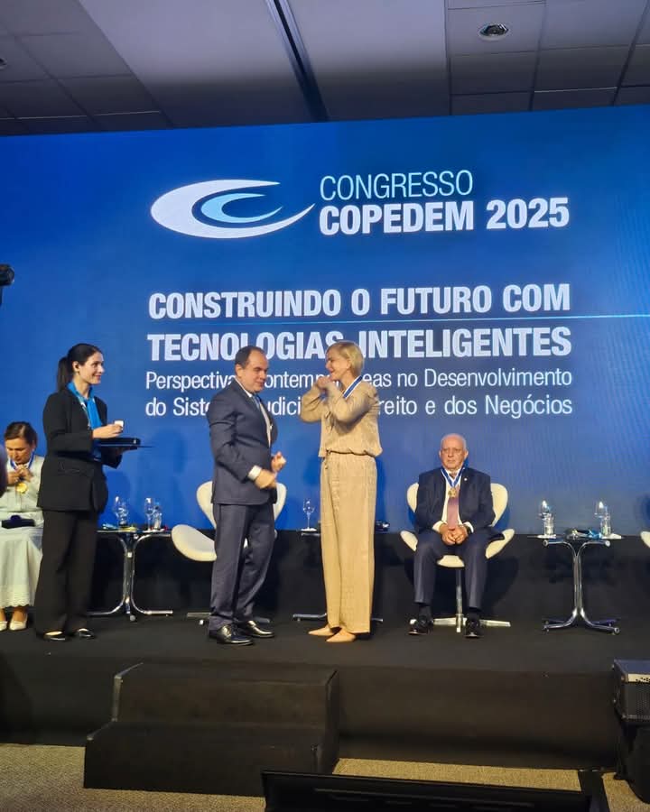 Presidente da OAB-RJ, Ana Tereza Basílio participou do Congresso COPEDEM 2025, sobre Inteligência Artificial, e recebeu, durante o evento, a Medalha de Mérito Acadêmico