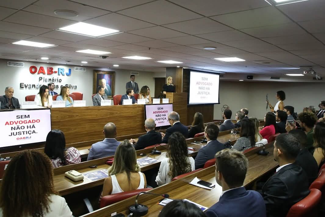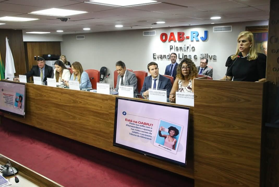 Presidente da OAB-RJ, Ana Tereza Basílio presidiu a primeira cerimônia de Entrega das Carteiras aos novos advogados e advogadas, da gestão 2025-2027, no Plenário Evandro Lins e Silva, ao lado da vice-presidente da seccional, Sylvia Drummond, do secretário-adjunto, Sérgio Antunes, da presidente da Caarj, Mônica Alexandre, da presidente da comissão OAB Jovem, Lívia Madeira, do Diretor de Valorização da Advocacia, Paulo Grossi, e do paraninfo, Alexandre Dumans.