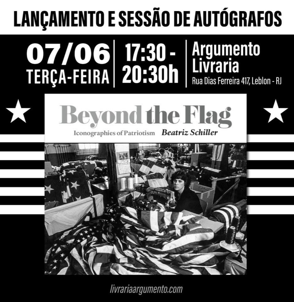 Jornalista carioca, que foi correspondente em Nova Iorque de 1970 a 1982 ( quando trabalhou no Jornal do Brasil, no antigo prédio da Avenida Brasil 500) e residente, até hoje, nos Estados Unidos, a jornalista e fotógrafa Beatriz Schiller vai lançar, na próxima terça, às 17h30, na Livraria Argumento do Leblon,  Beyond the Flag- Iconographics of Patriotism  (Além da Bandeira-Iconografia do Patriotismo).