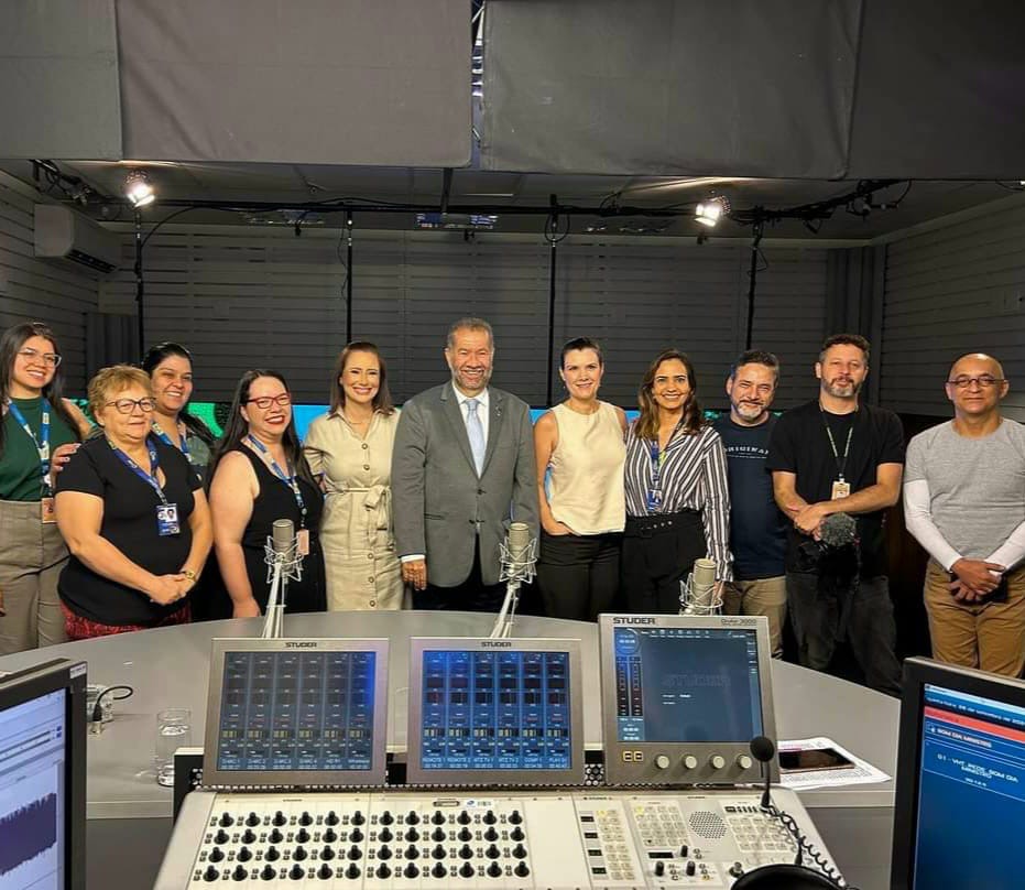 Na foto,  o Ministro da Previdência Social,  Carlos Lupi,  com a equipe do programa.