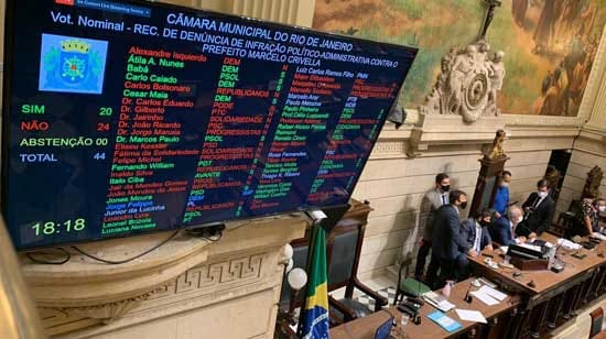 Em mais uma sessão semipresencial realizada na quinta-feira (17), a Câmara Municipal do Rio de Janeiro rejeitou por 24 a 20 votos a denúncia de infração político-administrativa contra o prefeito Marcelo Crivella, investigado pelo Ministério Público estadual no âmbito da operação Hades, que apura esquema de corrupção e organização criminosa na Prefeitura do Rio de Janeiro.