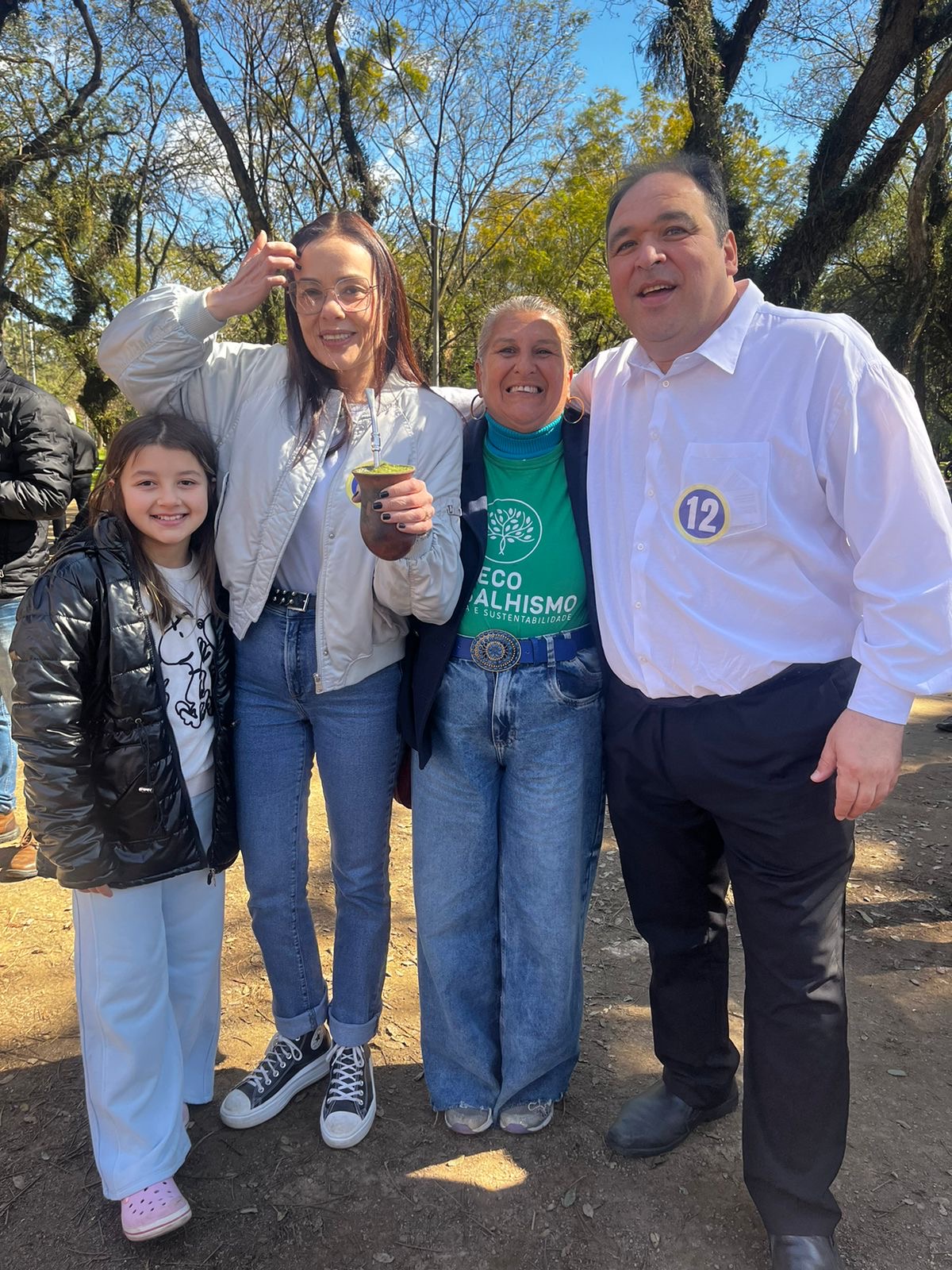 Na foto, Ivana Groff com Juliana Brizola e sua filha, Angelina Brizola, e o candidato a vice-prefeito, pela União Brasil, Thiago Duarte.