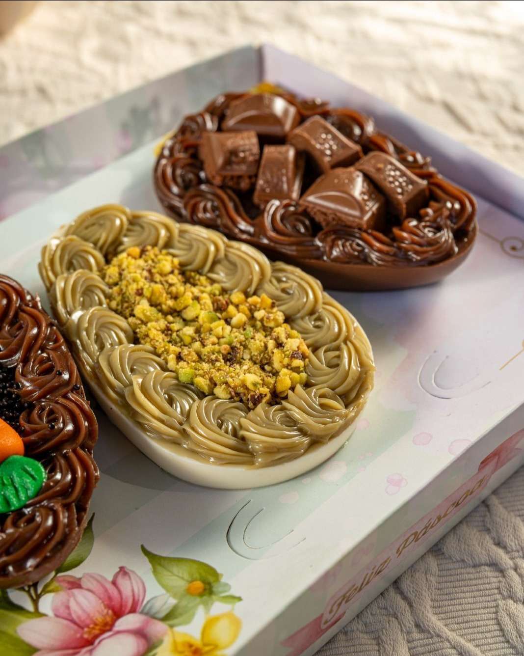 Na Biscoitos Mineiros, a tradição aparece em versões delicadas e acessíveis, como as caixas com três ovos de 50g (R$ 62,90) e 150g (R$ 125,90), ideais para compartilhar ou presentear com um toque artesanal.