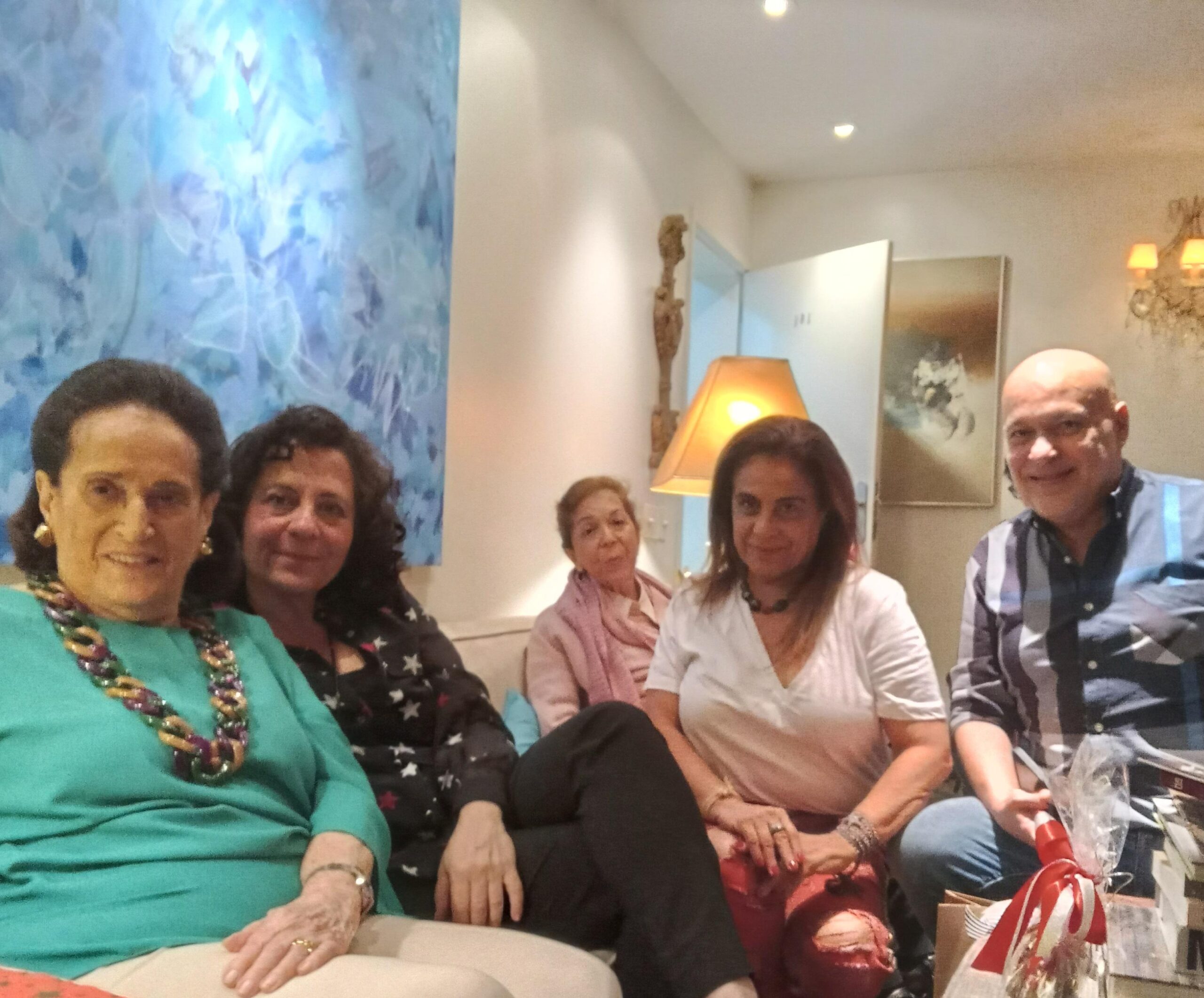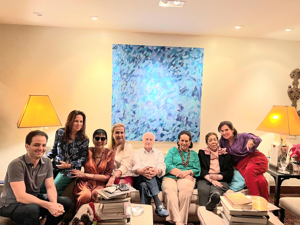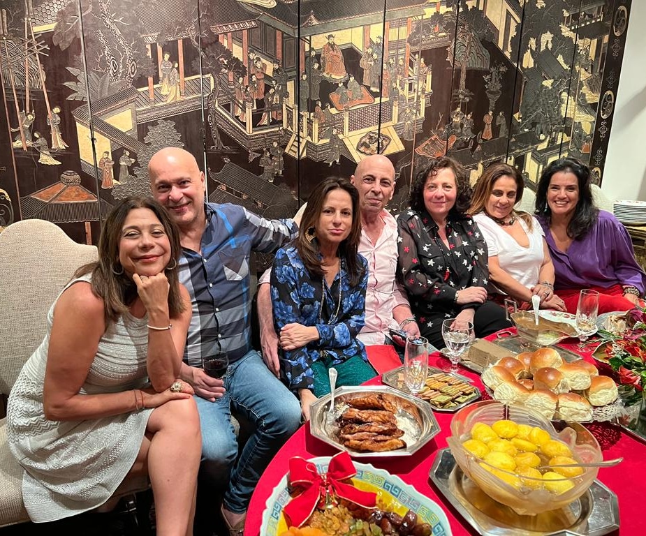 Entre as amigas e os amigos, as elegantes Gilda Chamma, com as filhas Lamia Abillama e Maya Abillama Aouad, Tereza Xavier, Luiz Xavier, Yacy Nunes, Cassio Saud, Claudio Gomes de Almeida, Angela e Alberto Alhante. Maya Abillama Aouad, que veio de Lisboa, onde mora, para passar o Natal com a mãe, Gilda Chamna, a irmã, Lamia, e a grande amiga, Belita, contou que começou a organizar um livro sobre a família Chamna, inspirado em seu querido avô, o empresário Jorge Chamna, e em sua avó, a super chique Evelina Chamna, que morreu em 2016, com mais de 95 anos.