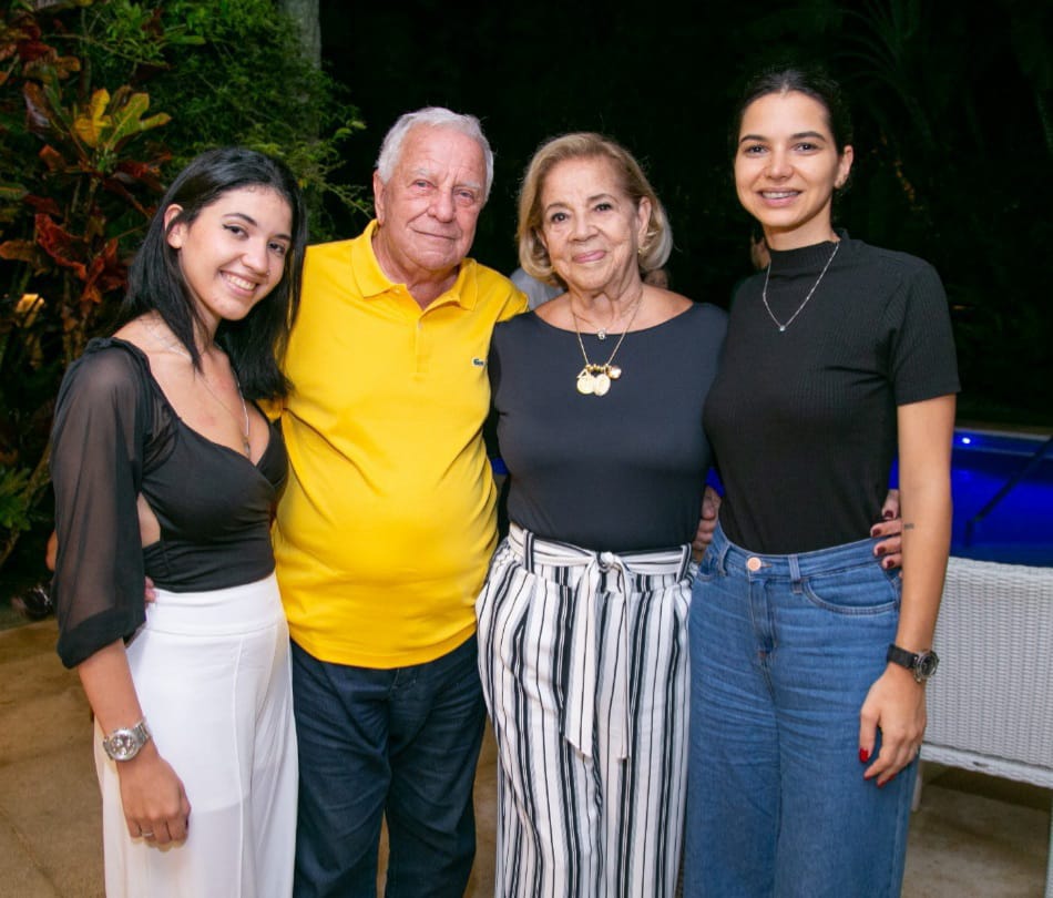 Nas fotos, Thetys e Mauro Magalhães, com as netas Maria Eduarda e Ana Carolina. E, também, o aniversariante Marco Aurélio Magalhães.
