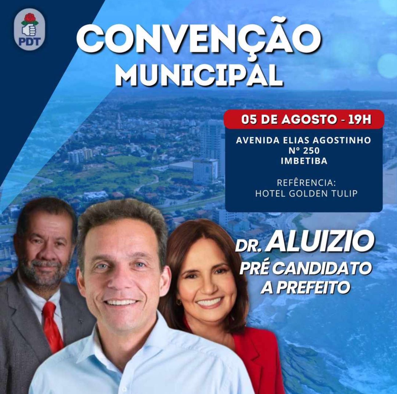 O ministro da Previdência Social e presidente licenciado do PDT, Carlos Lupi, vai participar, junto com a deputada Martha Rocha, presidente do PDT do Rio de Janeiro, da convenção do partido em Macaé, que vai oficializar o nome do pré-candidato à prefeitura, Doutor Aluizio (foto) , neste domingo, em frente ao Hotel Golden Tulip.