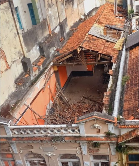 Em junho desse ano, outra parte do telhado desabou e a Defesa Civil chegou a isolar a casa e o Iphan notificou o proprietário, o advogado Alexandre Barreira, dono da empresa Arilucas, do setor imobiliário. A companhia comprou o imóvel, em 2011, da Santa Casa de Misericórdia, por R$ 1, 1 milhão.