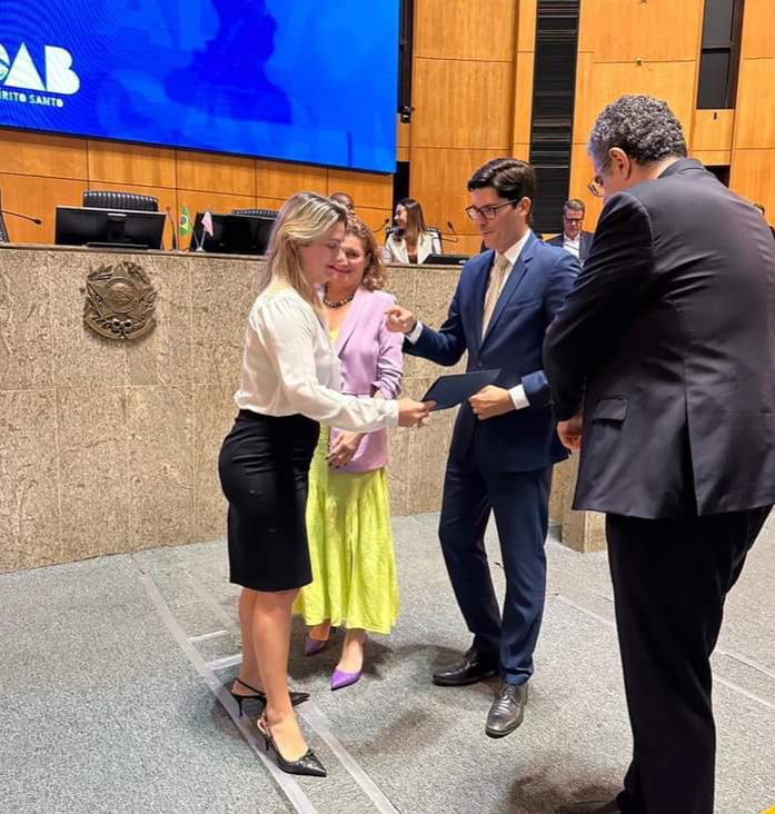 Advogada, mediadora e fundadora da Câmara de Mediação e Arbitragem RJ, Alessandra Balestieri recebeu homenagem, pelo Dia da Advocacia, por indicação do deputado Mazinho dos Anjos, na Assembleia Legislativa do Espírito Santo.