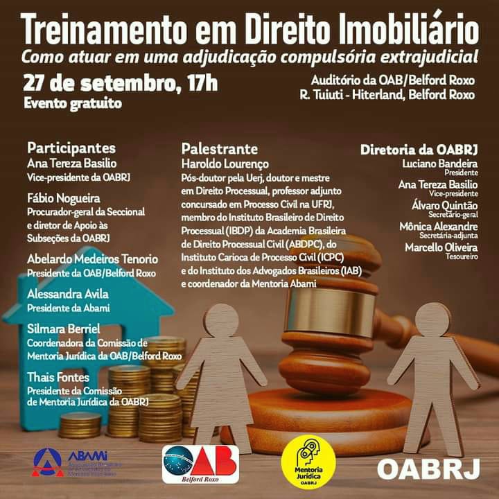 Também vão participar do evento gratuito,  o procurador-geral da OAB-RJ, Fábio Nogueira,  a presidente da comissão de Mentoria Jurídica,  Thais Fontes,  a presidente da ABAMI,  Alessandra Ávila,  o presidente da OAB de Belford Roxo,  Abelardo Medeiros Tenório, e os advogados Silmara Berriel e Haroldo Lourenço.