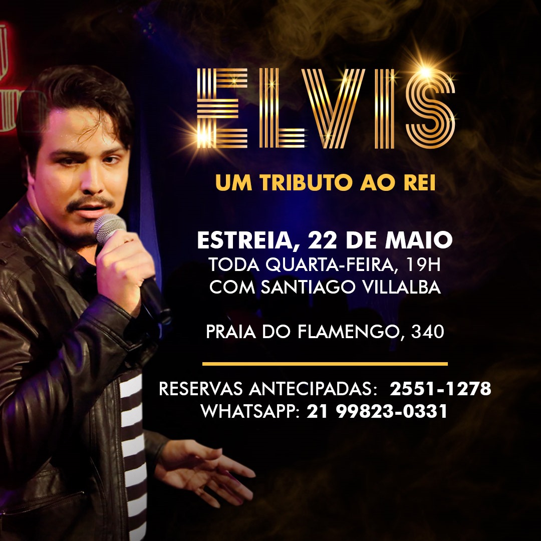 Dirigida por Beth Serpa e Carlos Alberto Serpa, a Casa Julieta de Serpa vai receber, no J Club, todas as quartas, a partir do dia 22  de maio, às 19h, o show “Elvis, um tributo ao Rei”, no jantar musical, com Santiago Villalba.