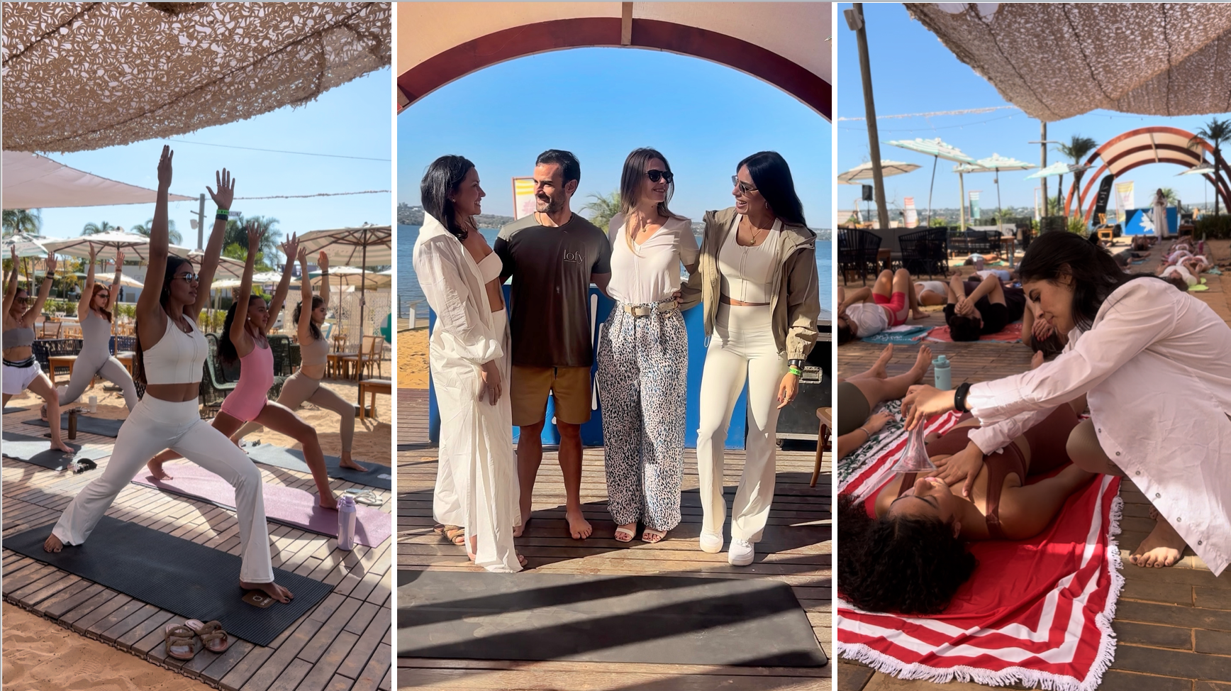 A Embaixada da Itália, em parceria com o Festival Na Praia, promoveu no domingo (7) uma manhã de bem-estar à beira do Lago Paranoá. O encontro exclusivo para mulheres reuniu convidadas para uma aula de ioga conduzida pelo Estúdio Lofy, seguida de uma apresentação sobre o conceito Wellness com Rose Chaves e uma experiência de aromaterapia.