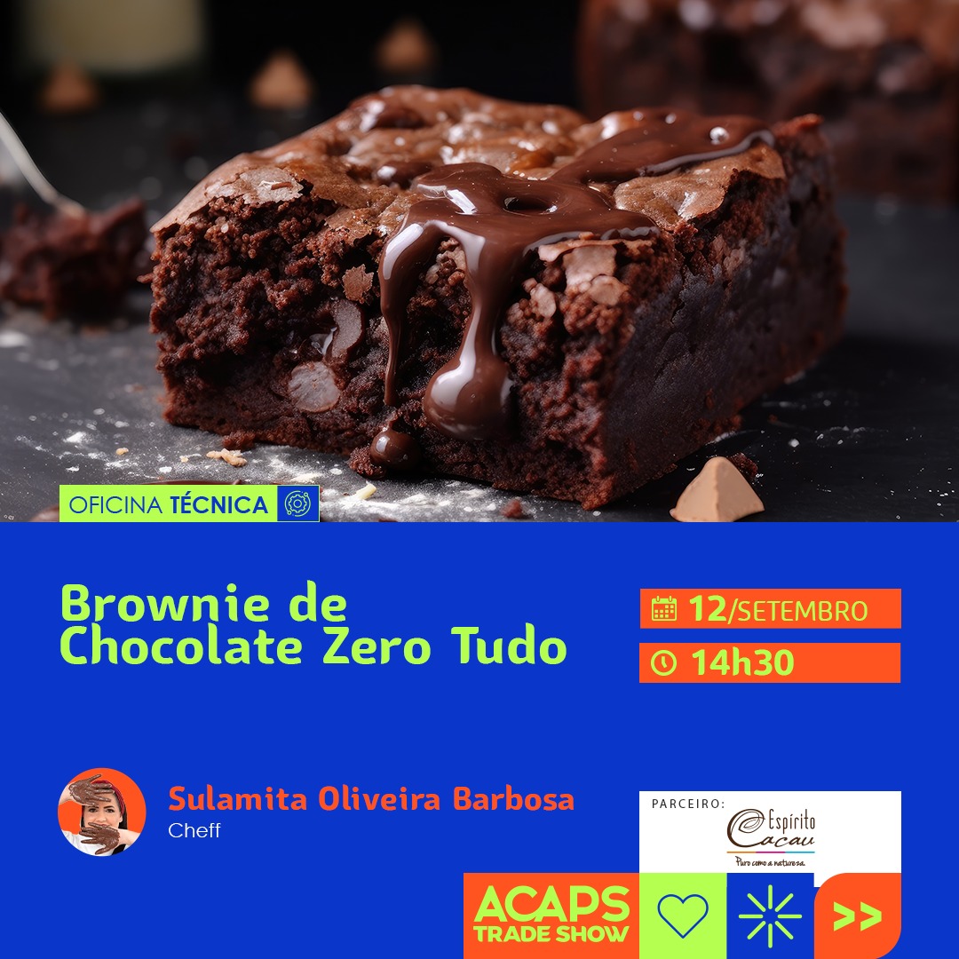 Durante o evento, no dia 12 de setembro, às 14h30, a Espírito Cacau também promoverá a Oficina Técnica Brownie de Chocolate Zero Tudo com a Chef Sulamita de Oliveira Barbosa que irá preparar uma receita de brownie e dar diversas dicas gastronômicas.