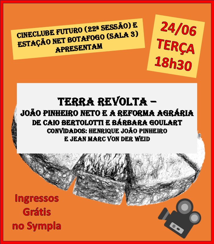 Produtor Executivo do documentário ‘Terra Revolta-João Pinheiro Neto e a Reforma Agrária ” (dirigido por Bárbara Goulart e Caio Bortolotti), o economista Henrique João Pinheiro (filho de João Pinheiro Neto) participa, nesta terça-feira, dia 24 de junho, às 18h30, do debate promovido pelo Cineclube Futuro e pela Estação Net Botafogo, depois da exibição do filme, com a participação do ex-presidente da UNE (1969-1971) e ambientalista Jean Marc von Der Weid.