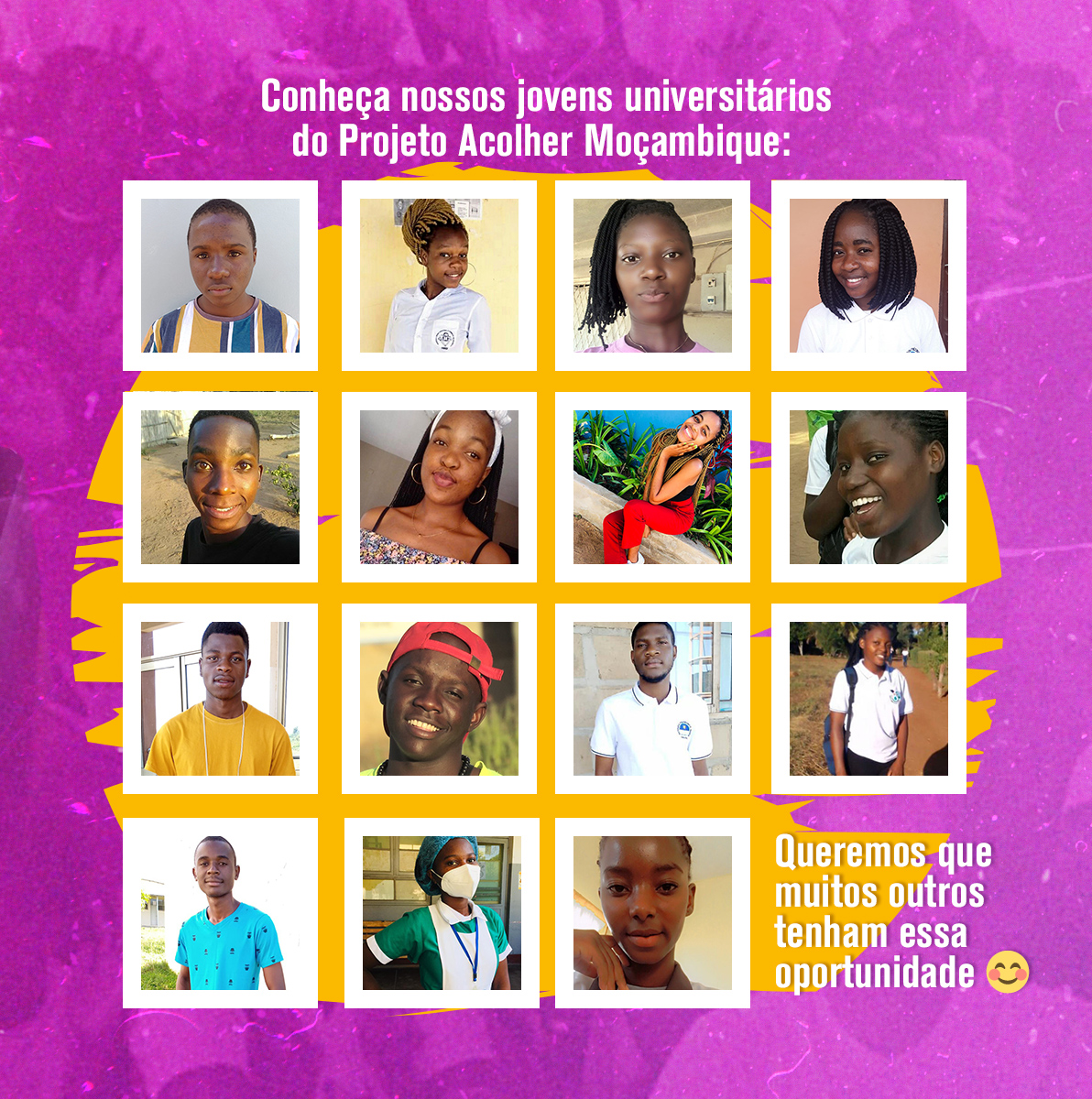 O apadrinhamento de jovem universitário no Projeto Acolher Moçambique está disponível no link: https://fraternidadesemfronteiras.colabore.org/jovem