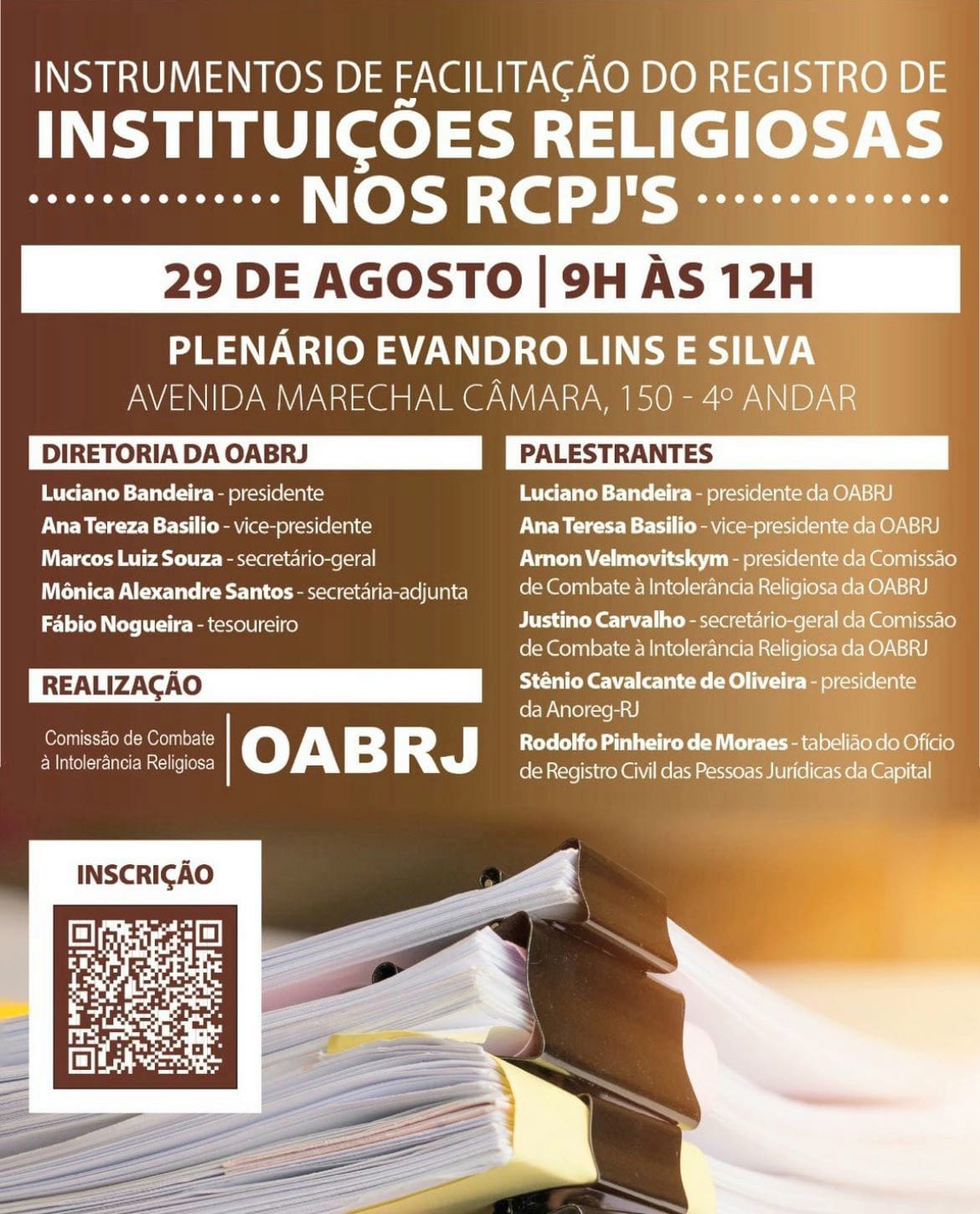 Também vão participar, o presidente da comissão de Combate à Intolerância Religiosa da OAB-RJ,  Arnon Velmovitsky,  o secretário-geral da comissão, Justino Carvalho,  o presidente da Anoreg-RJ,  Stênio Cavalcante de Oliveira,  e o tabelião do Ofício de Registro Civil das Pessoas Jurídicas da Capital,  Rodolfo Pinheiro de Moraes.