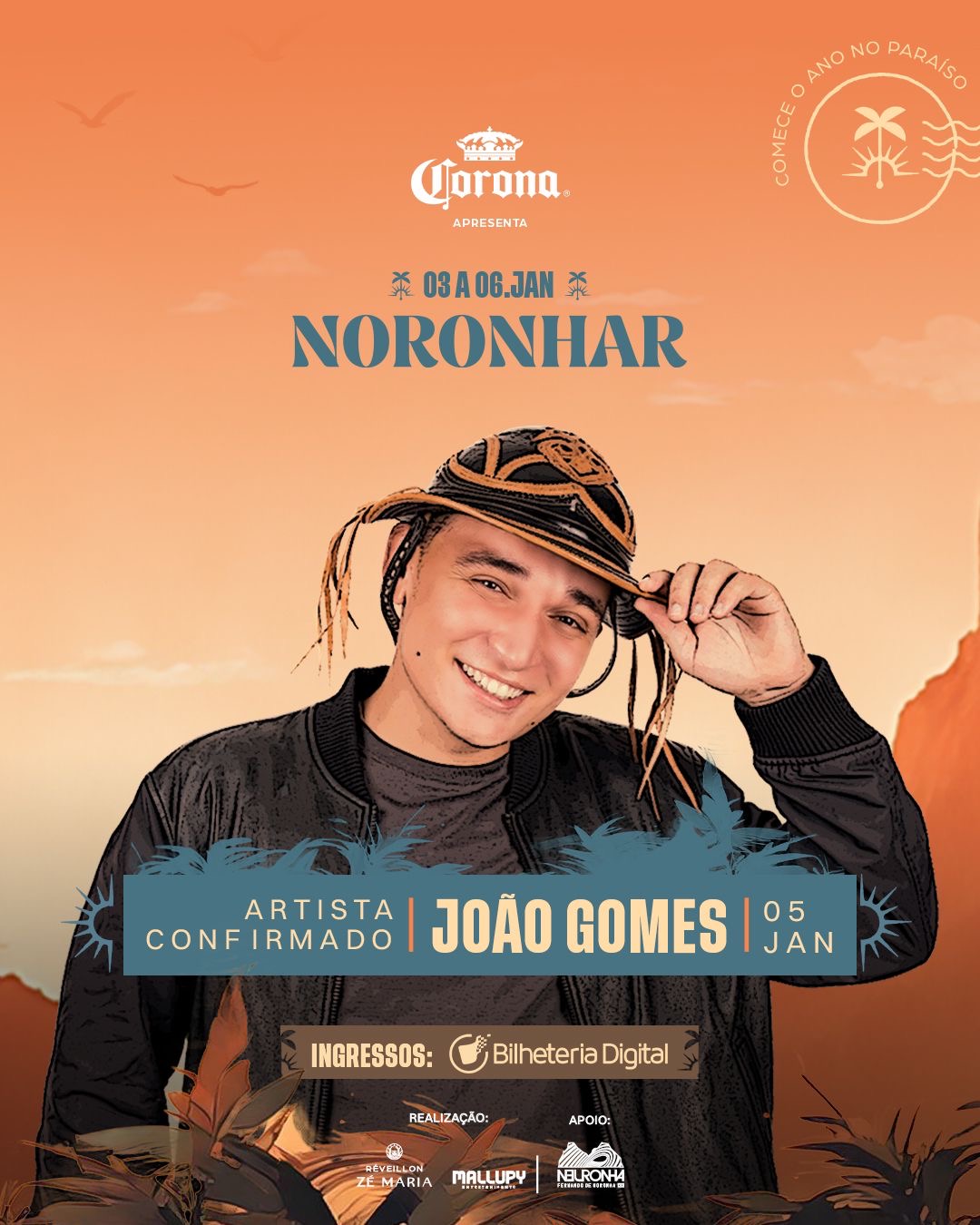 Com shows imperdíveis e a vibe única de Noronha, o público poderá curtir a presença de artistas renomados como Jeito Moleque, Falamansa, João Gomes, L7nnon, Leo Picon e muitos outros, em um ambiente que combina natureza exuberante e a hospitalidade incomparável da Pousada Zé Maria.