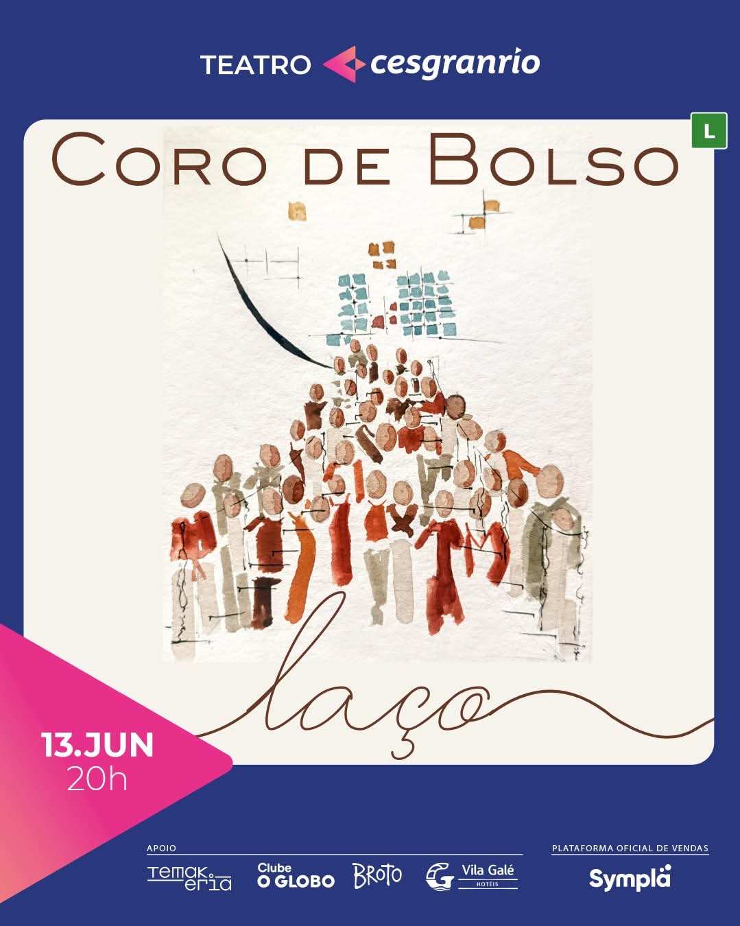 Criado por Carlos Alberto Serpa, o Teatro Cesgranrio vai receber, nesta sexta-feira, dia 13 de junho, o espetáculo ” Laço “, apresentado pelo grupo Coro de Bolso, com repertório de 13 músicas, 32 coralistas, com falas intercaladas e poesias que reforçam a narrativa de conexão e herança familiar.