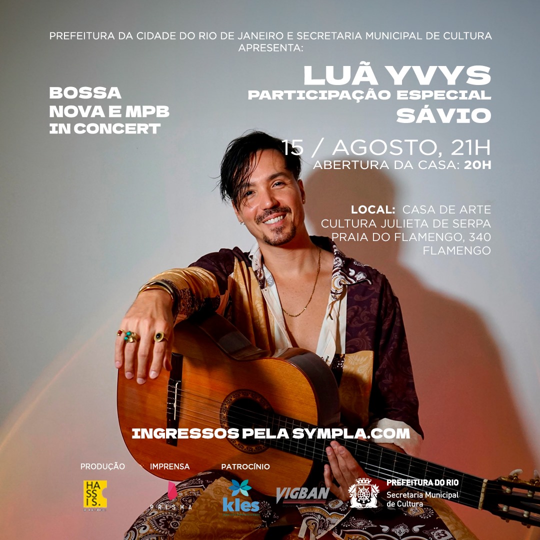 Dirigida por Beth Serpa e Carlos Alberto Serpa, a Casa Julieta de Serpa ( Praia do Flamengo 340) vai receber, na quinta, dia 15 de agosto, a partir das 20h ( abertura da casa), o show de Luã Yvys ( com participação especial de Sávio), cantor, compositor, produtor musical, filho de Elba Ramalho e do ator e compositor Maurício Mattar.