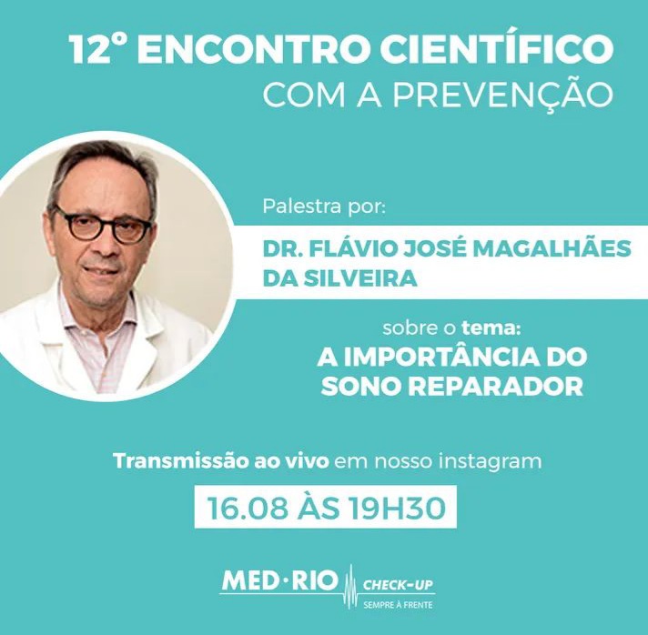 Diretor da Med-Rio Check-Up, Gilberto Ururahy vai receber para o 12°Encontro Científico com a Prevenção, na próxima segunda (dia 16 de agosto), às 19h 30min, na clínica, em Botafogo, o médico Flávio José Magalhães da Silveira, que vai falar sobre A importância do sono reparador.