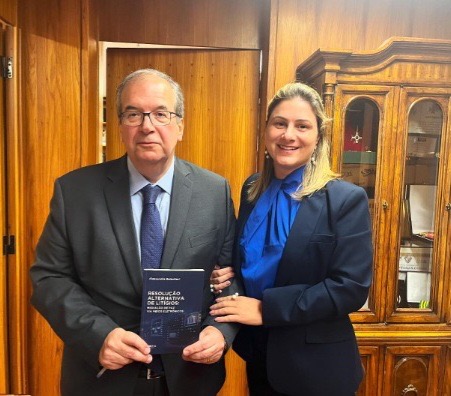 A advogada Alessandra Balestieri presenteou o ministro Ricardo Villas Boas Cueva, do STJ,  com seu novo livro,  “Mediação de Paz Via Meios Eletrônicos “, que será lançado,  brevemente,  no Rio de Janeiro( foto).