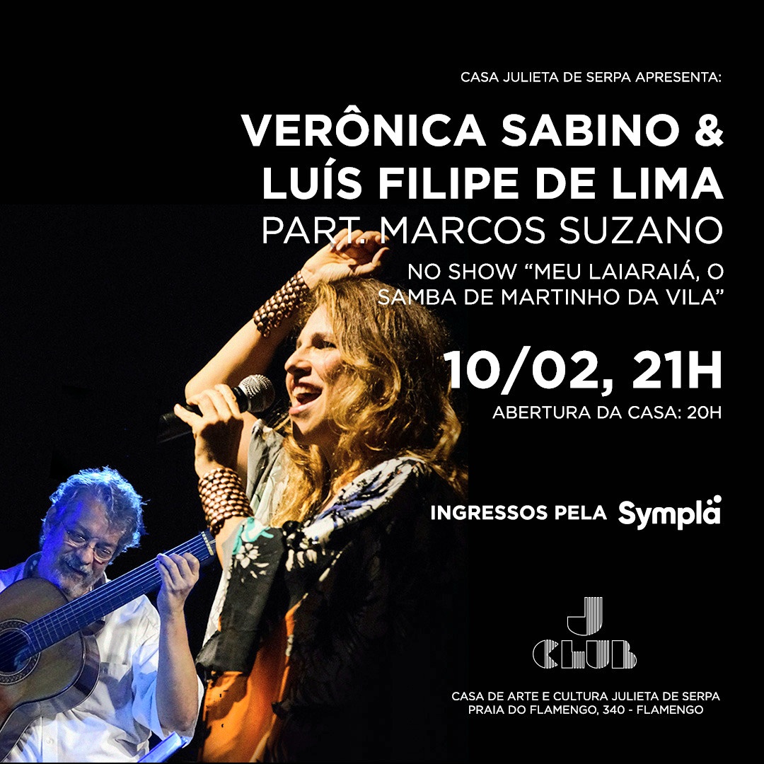 Dirigida por Carlos Alberto Serpa, a Casa Julieta de Serpa recebe, na sexta-feira, 10, às 21h, o show “Meu Laraiá, o samba de Martinho da Vila”, com Verônica Sabino e Luis Felipe de Lima, e a participação de Marcos Suzano.