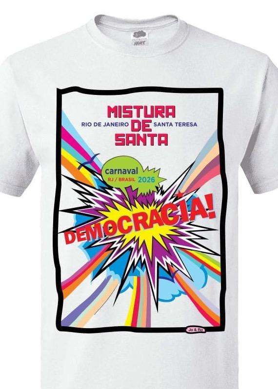 Bloco do charmoso bairro de Santa Teresa, o Mistura de Santa vai celebrar a democracia e lançará, neste sábado, dia 6 de dezembro, no Solar do Mirante (Rua Leopoldo Fróes, 163), a camiseta assinada pelos artistas plásticos Jo Oliveira e Rosanna Naccarato, com roda de samba gratuita, a partir das 19h.