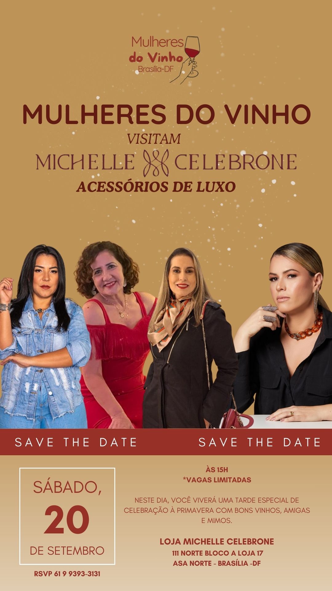 O grupo Mulheres do Vinho de Brasília, a principal comunidade feminina do DF focada em enogastronomia e networking, anuncia sua mais nova parceria estratégica com a Michelle Celebrone Acessórios de Luxo para a realização do evento exclusivo “Os Sinais da Primavera: O Despertar da Sua Elegância”.