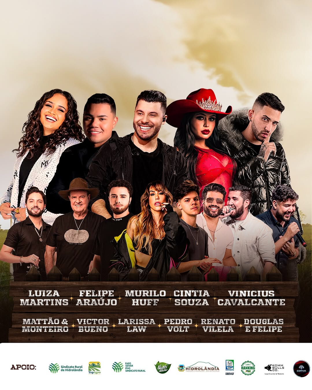 Com entrada franca, a 4ª edição do Festival do Cordeiro e a 2ª Feira de Agronegócios Top Agro acontecem entre os dias 29 de abril e 3 de maio, no Parque de Eventos Casimiro Lino de Araújo, em Hidrolândia (GO). O evento terá como atrações principais Murilo Huff, Felipe Araújo, Luíza Martins e a dupla Mattão e Monteiro, além de reunir outros artistas, tradição agropecuária e o melhor da gastronomia regional.