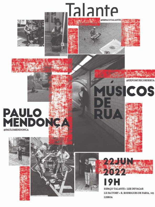 Querido e admirado por todos, no mundo do cinema, da poesia, teatro, e da música, Paulo Mendonça vai lançar, a partir de 22 de junho ( quarta que vem, às 19hs), no Espaço Talante, na Livraria Ler Devagar ( na LX Factory), em Lisboa, a exposição de suas fotografias, “Músicos de Rua “.