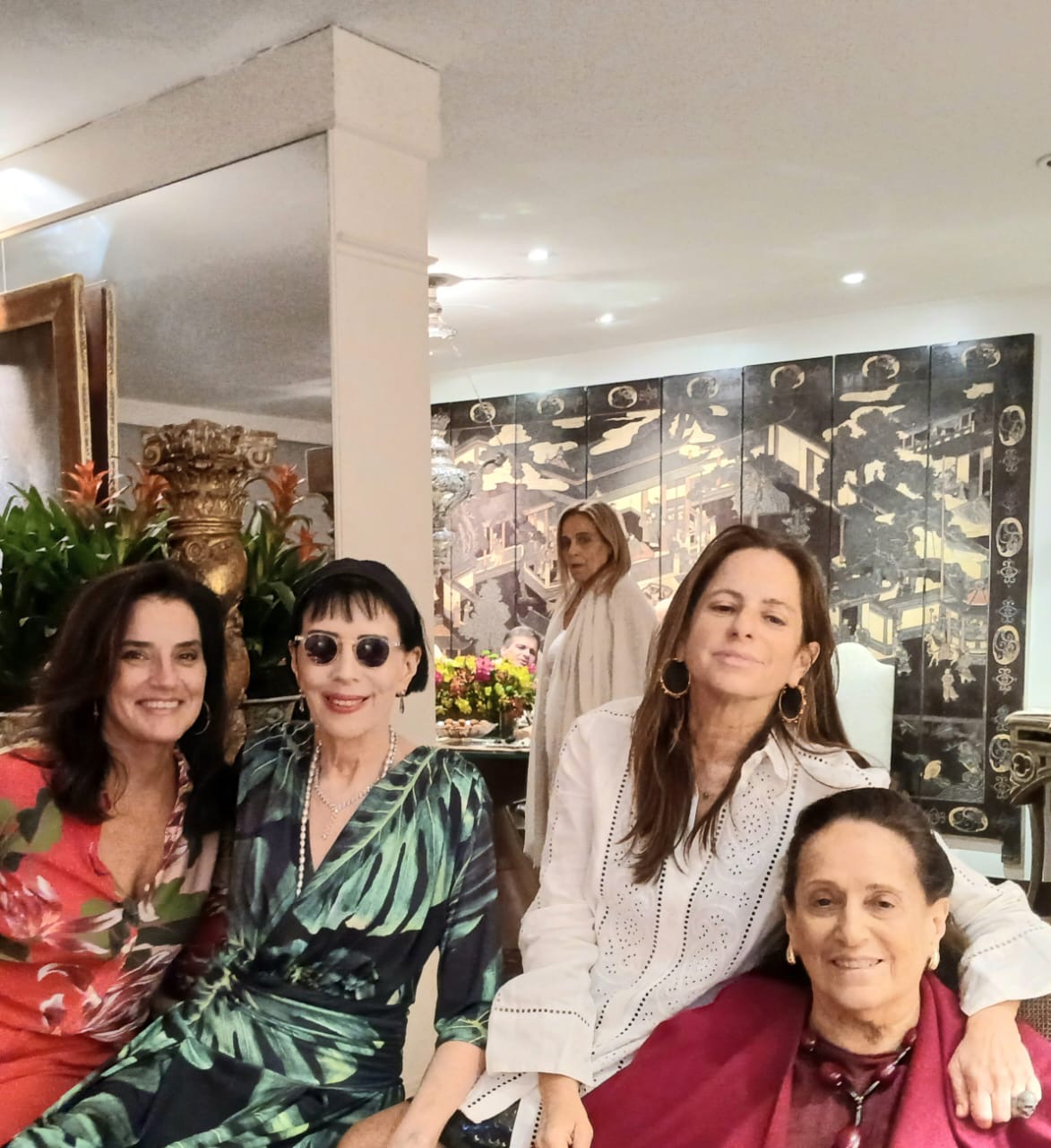 Estavam lá,  o querido advogado Roberto Halbouti,  com Paulo Arguelles,  a embaixatriz Sandra Nauslasky,  os artistas plásticos e admirados joalheiros,  Tereza Xavier e Luiz Xavier,  o diplomata e conselheiro da Embaixada do Brasil na Índia,  João Belloc, o empresário de eventos Sergio Felipe Coutinho,  cerimonialista e decorador, a jornalista Yacy Nunes,  Andrea Freire,  o cirurgião plástico Rawlson de Thuin, Cassio Saud e seu sobrinho,  Pedro Luiz Botelho, e o casal Angela  e Alberto Alhante.