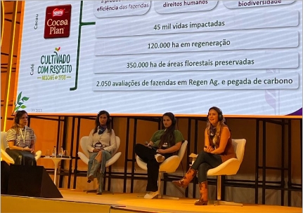 No segundo e último dia do congresso, a Nestlé liderou o painel “Nescafé Plan – o maior programa de sustentabilidade em cafés do mundo: uma jornada regenerativa e de protagonismo feminino”, moderado por Liliane Ceo, Supervisora Agrícola Cafés da companhia. As produtoras Priscila Figueiredo e Scheyla Pessi Kubit foram convidadas para falar sobre os desafios e oportunidades que as mulheres encontram na cafeicultura brasileira.