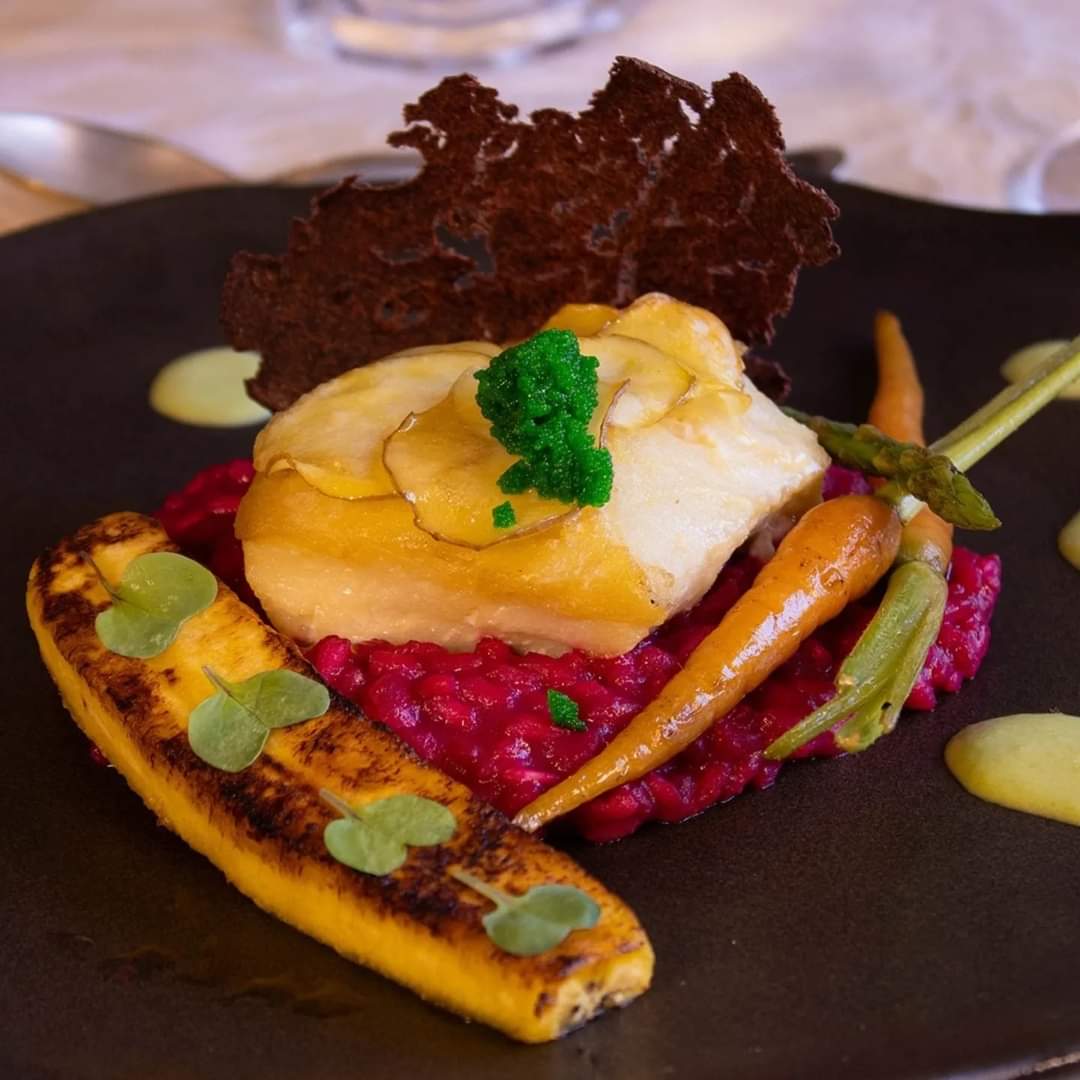 Para o principal, Namorado na escama de batata calabresa, mini risoto de beterraba, tuile de batata roxa, banana da terra, ou Mignon com mil folhas de mix de legumes, ou Rondelle ao molho pomodoro.