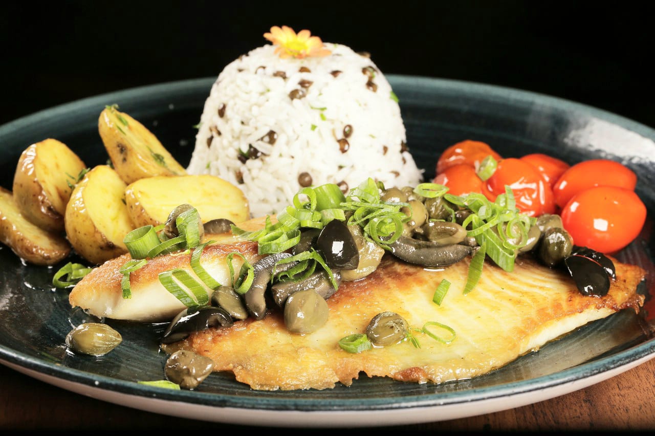 (Escalope de mignon), R$ 95(Salmão grelhado), R$ 85 (Risoto de Camarões), e R$ 88 (Arroz de Pato).