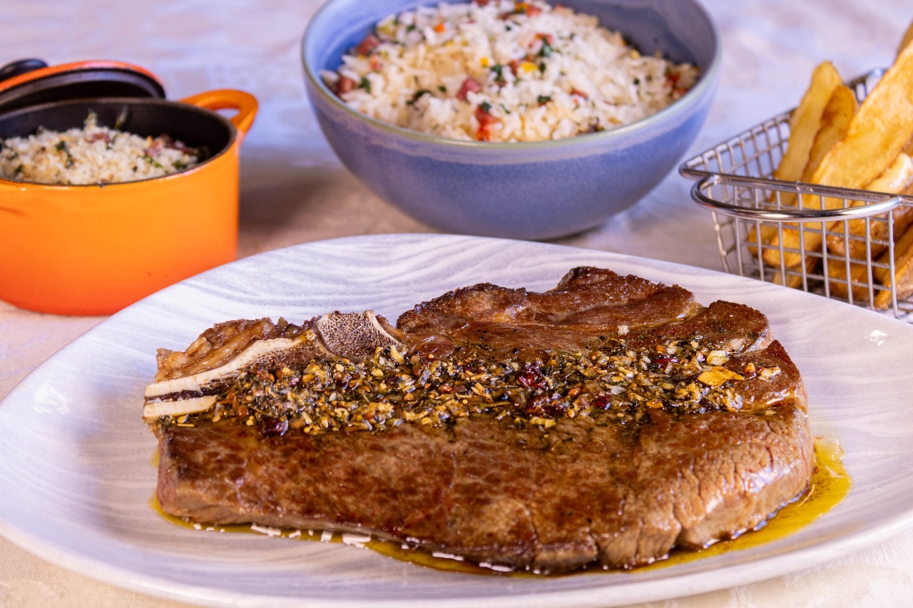 No Especial de Domingo, para duas pessoas, a sugestão para o Principal é o Namorado grelhado com moqueca de camarão  ,  ou o  Short Rib,  com arroz,  linguiça mineira ( fotos ).
