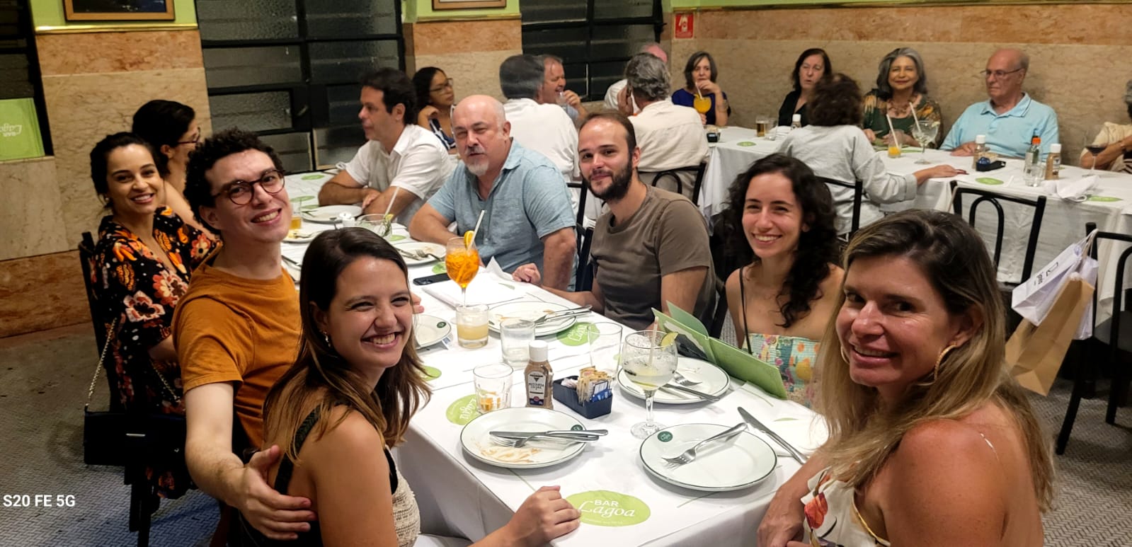O economista e professor Fernando Mattos reuniu a família e amigos do grupo de zap “Em nome da Rosa” (em homenagem à escritora e jornalista Rosa Freire d’Aguiar) para a comemoração de seu aniversário, no Bar Lagoa.