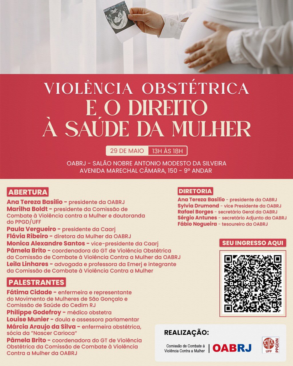 Também estarão no encontro presencial, a presidente da comissão de Combate à Violência contra a Mulher, Marilha Boldt, a presidente da Caarj, Paula Vergueiro, a diretora da Mulher da OAB-RJ, Flávia Ribeiro, entre outras convidadas e outros palestrantes.