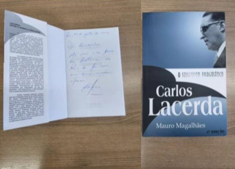Escrito e lançado pelo ex-deputado Mauro Magalhães, em 1992, um exemplar do livro “Carlos Lacerda – O sonhador pragmático” – uma das primeiras biografias sobre Carlos Lacerda, que já está em sua quarta edição – foi presenteado ao secretário de Saúde do Estado do Rio de Janeiro, doutor Luizinho, com dedicatória assinada pelo autor.