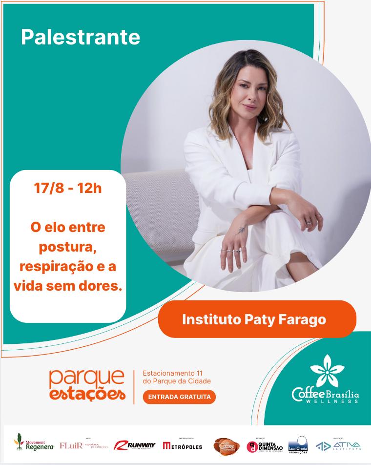 Entre os destaques da programação do evento está a palestra da especialista em saúde, postura e movimento, Paty Farago, que, neste domingo (17), às 12h, apresenta o tema “Coffee Wellness: o elo entre postura, respiração e a vida sem dores”. Reconhecida por integrar conhecimento técnico e práticas acessíveis, Paty vai mostrar como pequenos ajustes no corpo e na respiração podem aumentar a disposição, prevenir dores e transformar a rotina.