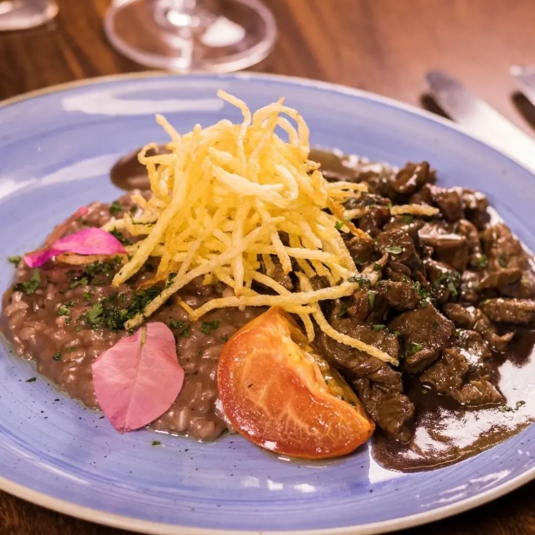 Entre os destaques, o Picadinho de Carne com batata palha, ao molho de vinho e alecrim, com risoto escuro de queijo e tomates cereja.