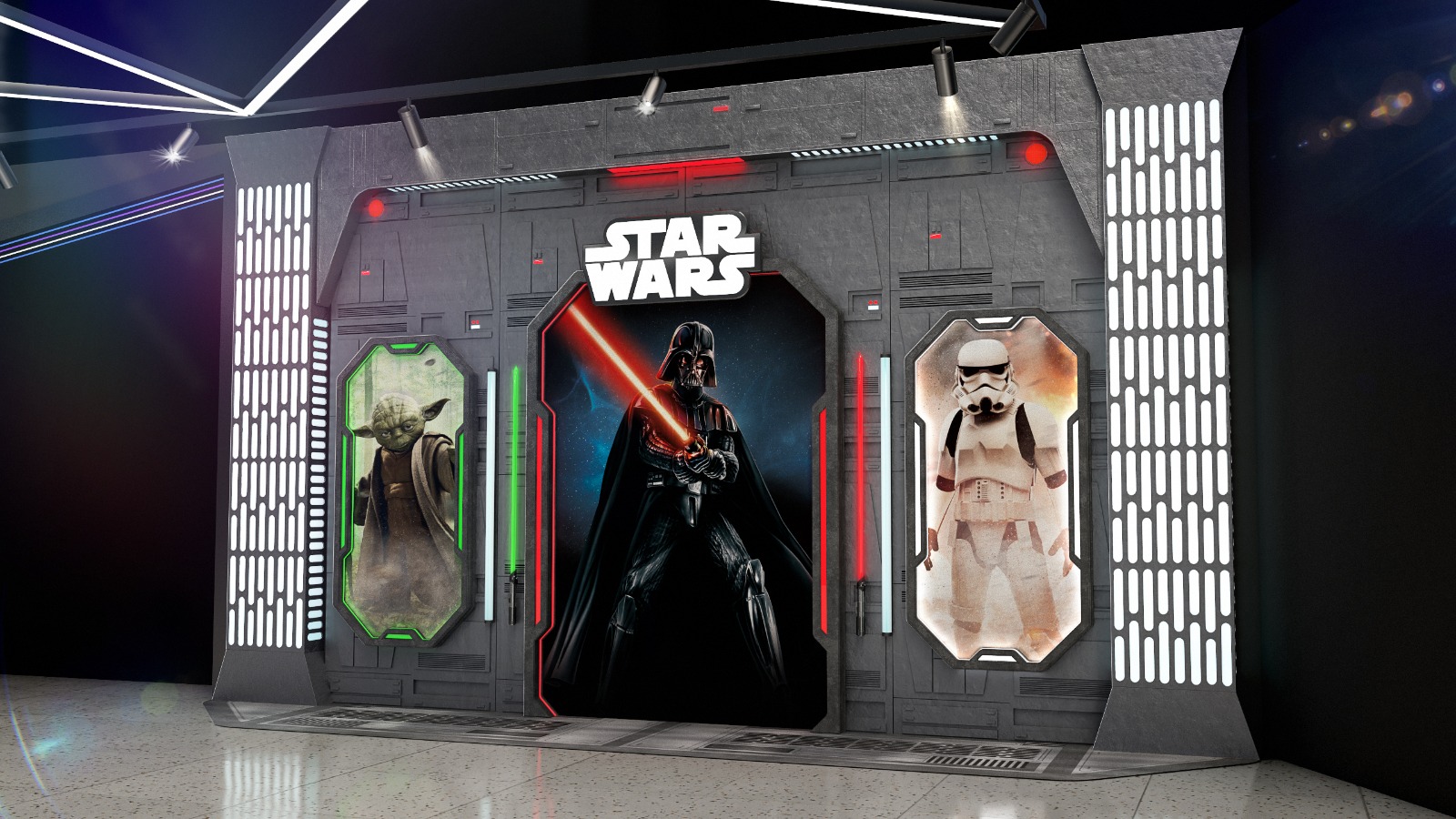 O projeto arquitetônico foi criado para envolver e encantar a clientela com espaço instagramável da saga Star Wars e área com jogos para a realização de festas.