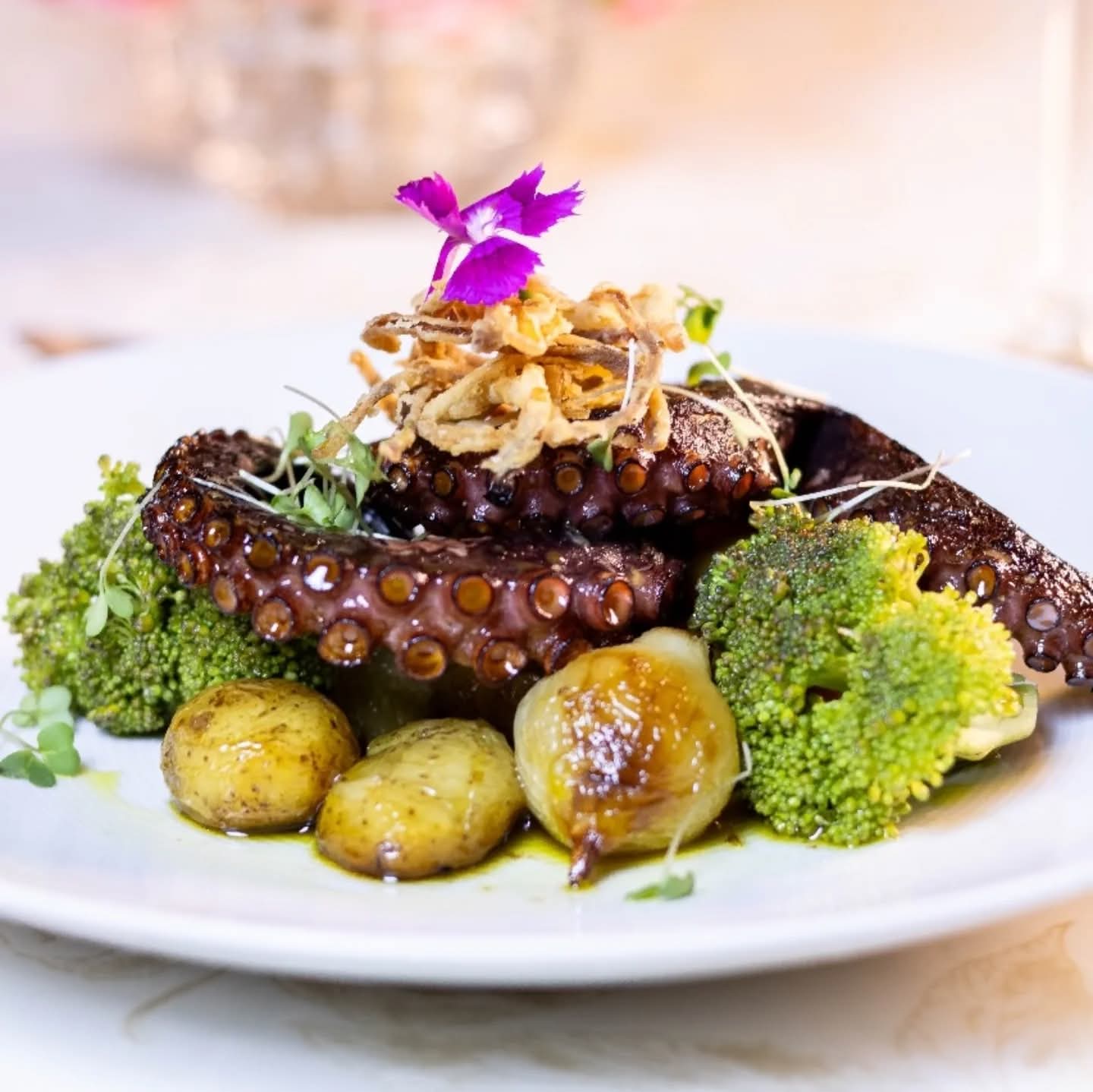 Polvo grelhado com musseline de ervilha, no Jantar de Outono da Julieta de Serpa