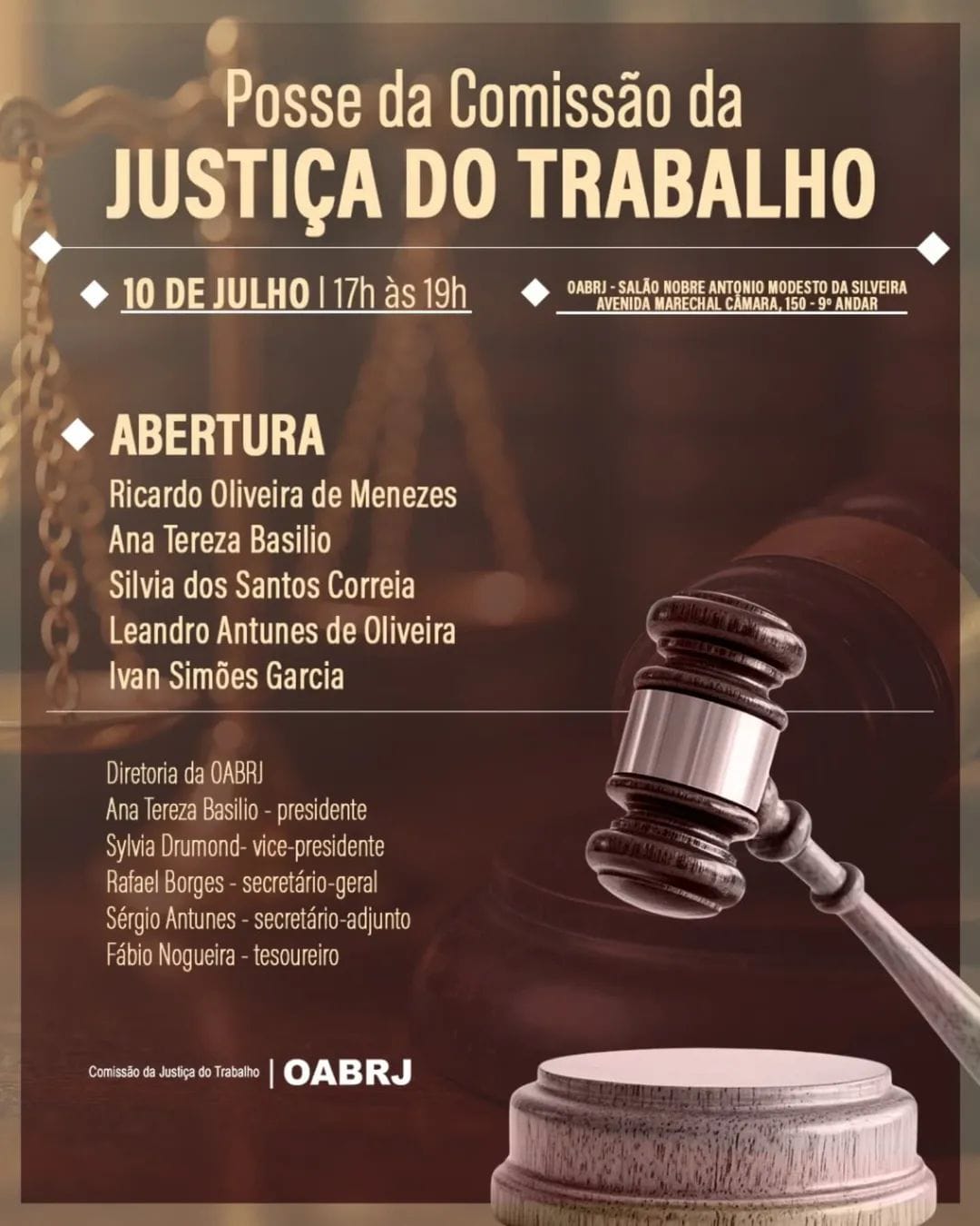 Também estarão no evento presencial, o presidente da comissão de Justiça do Trabalho, Ricardo Menezes, os advogados Silvia Correia, Leandro Antunes, Ivan Simões Garcia, entre outros.