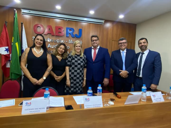 Presidente da OAB-RJ, Ana Tereza Basílio participou da posse da nova diretoria da OAB de Maricá, em solenidade presidida por Eduardo Carlos de Souza (presidente da OAB de Maricá), com as presenças da vice-presidente da subseção, Lucivani das Neves, do tesoureiro, Jorge Paes, da secretária-geral, Vanessa Mussi, do secretário-adjunto, Marcos Freitas, entre outros convidados (fotos).