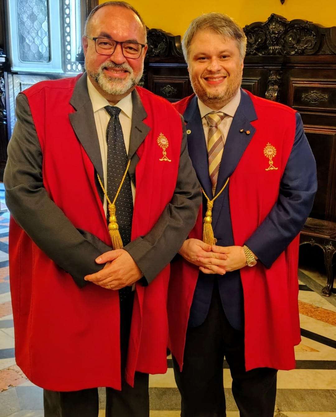 Provedor da Irmandade de Nossa Senhora da Lapa dos Mercadores,  o empresário Claudio André Castro, e o presidente da Uniapac Adce’Rio,  Associação de Dirigentes Cristãos de Empresa, Elmair Neto,  tomaram posse como membros da Irmandade do Santíssimo Sacramento da Candelária.