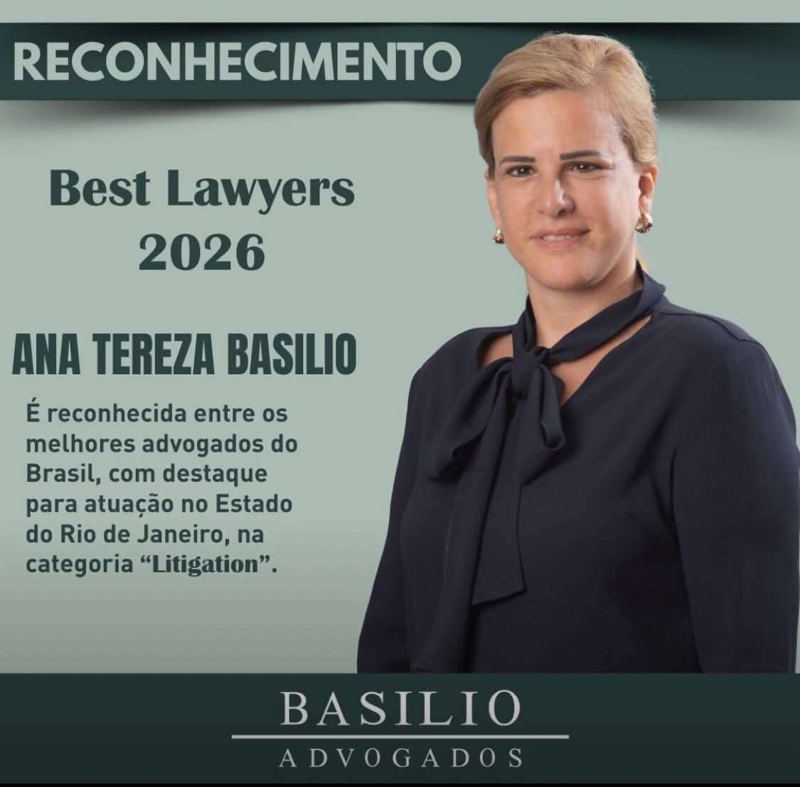 Presidente da OAB-RJ e sócia-fundadora do Basílio Advogados, Ana Tereza Basílio recebeu, da premiação Best Lawyers 2026, o Reconhecimento  entre os melhores advogados do Brasil com destaque para atuação no Rio de Janeiro,  na categoria ” Litigation” ( contencioso).