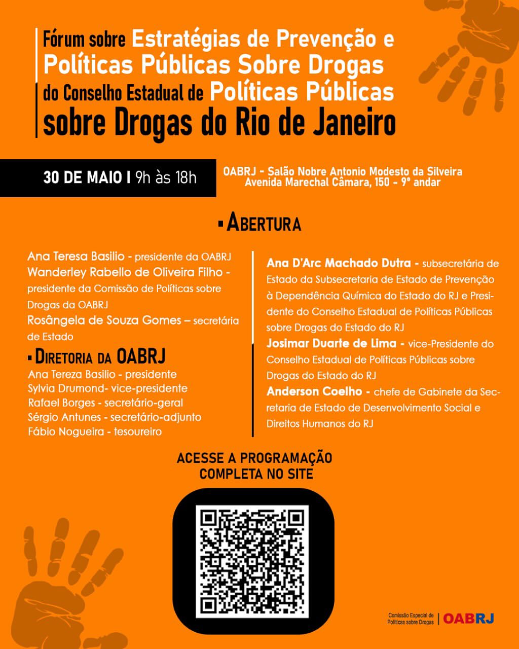 Também estarão na abertura do encontro, o presidente da comissão de Políticas sobre Drogas da OAB-RJ,  Wanderley Rabello de Oliveira Filho,  a Secretária estadual de Assistência Social,  Rosângela Gomes,  entre outros convidados.