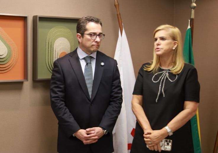 Na foto, Ana Tereza Basílio e o Diretor Tesoureiro, Fábio Nogueira.